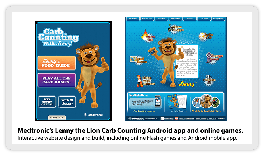 A while back, I reverse engineered a Medtronic iPad app and created for them the Android version for download from the google play store. Programmed in AS3 and packaged as an AIR application. Online Flash games playable here. -